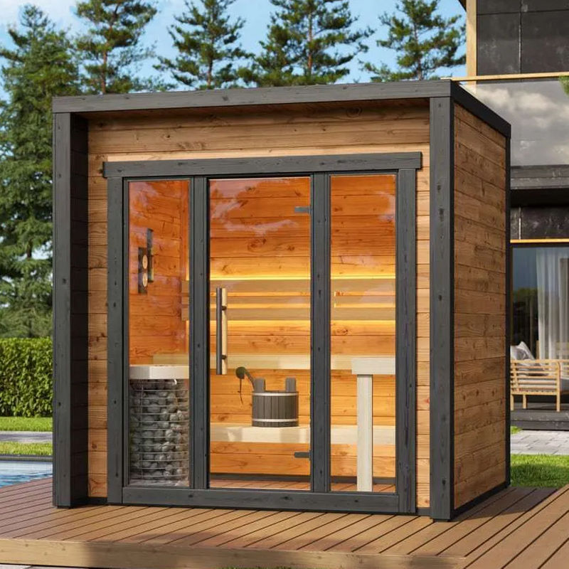 The spacious bench seats Garden Outdoor Sauna is a luxurious four-person outdoor sauna, combining modern design with outstanding functionality. This sauna is constructed with Canadian cedar wood and is extremely durable, making it ideal for use in gardens, patios, or terraces. The spacious interior design is aimed at maximizing comfort, featuring ergonomic double-tiered benches and tempered glass decorations, creating a cozy and relaxing space for relaxation.